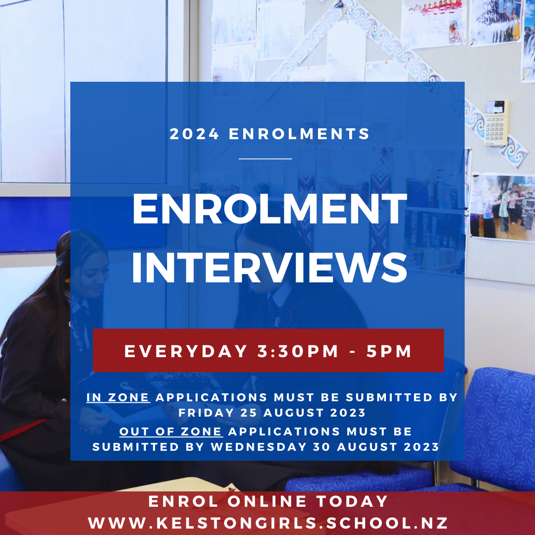 From Monday 21 August - Friday 25 August we are running Enrolment Interviews everyday. Still need to enrol? www.kelstongirls.school.nz